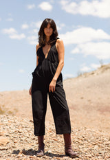 The Lookout jumpsuit taps a feminine bohemian aesthetic and features a shaped bodice that leads into pointed adjustable ties at shoulders. Crafted in double layers of our signature organic cotton with a deep V-neck and relaxed wide legged fit. Style it with a rattan bucket bag and leather flats for a breezy Summer edit.