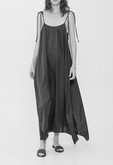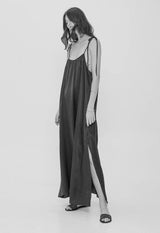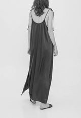 It features self ties at shoulder with high slit up left leg. Pair with heels for warm vacation dinner and a cashmere robe for ultimate luxury by a winter fire.