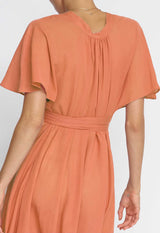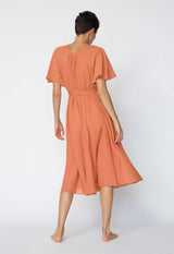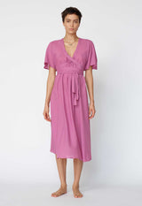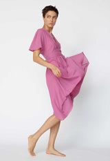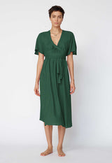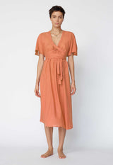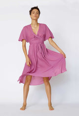 The flowing nature of the Nautilus Dress blends a Kaftan shape with the femininity of a dress. The banding around the V neckline continues into ties that wrap around the empire line or natural waist to create a more fitted shape. Crafted in a light single layer, it makes a great beach dress or layer over one of our slips for more coverage.
