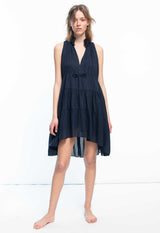 Inspired by travels to Grecian isles, our Patmos is a Summer favorite, that can be worn open and swingy or fitted to flatter your waistline with the drawstring cinched. The tiered skirt gently flows out and is dropped slightly longer in back. It is fully lined for all day anywhere wear and has inseam pockets for timeless Summer style.