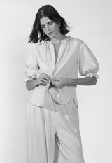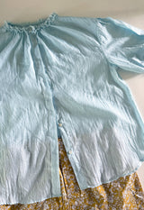 The most relaxed, short sleeved cotton blouse. Featuring tiny ruffle detail at neckline & sleeve hem with delicate pin-tuck pleats at shoulder.