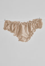 Delicately gathered Softwash Silk Bloomer with the tiniest elastic— extra comfort in a lovely shape that feels like wearing next to nothing. Available here in a mousy Taupe and a Champagne silk.