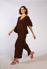 Pull on pant with contrasting tuxedo stripe down the side. Classic high rise and straight leg for an elevated going out look. This pant harkens back to a more glamorous era of lounge and is crafted with a luxurious yet sporty aura.
