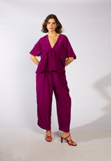 Pull on pant with contrasting tuxedo stripe down the side. Classic high rise and straight leg for lounging, or throwing on for the beach. This pant harkens back to a more glamorous era of lounge and is crafted with a luxurious yet sporty aura.