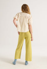 The most relaxed, short sleeved cotton blouse. Featuring tiny ruffle detail at neckline & sleeve hem with delicate pin-tuck pleats at shoulder.