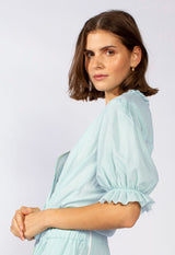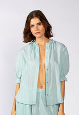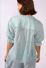 The most relaxed, short sleeved cotton blouse. Featuring tiny ruffle detail at neckline & sleeve hem with delicate pin-tuck pleats at shoulder.