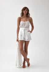 Crafted from an elegant oversized linen eyelet, our Tellin Short is a sophisticated take on Summer dressing. Crafted from a unique linen linen in a high-waisted shape with pleats, side pockets and a rolled cuff, finished with a tie belt at waist