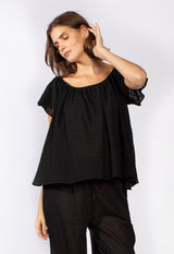 Bringing back a classic from the early days of Loup Charmant, this swingy blouse is the absolute wardrobe staple. With raglan sleeves and full loosely fitting body it's easy to throw on and styles falwlessly. This top is a single layer top with flared sleeves and scooped neckline, perfect to tuck in or wear more loosely.