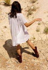 The Tia Dress, our newest edition of easy spring/summer dressing. The best throw on dress or cover-up for any occasion. Perfect for vacationing or to wear over a slip. It has a wide swingy hem that gives a full A-line shape and V-neckline showing just the right amount of skin.